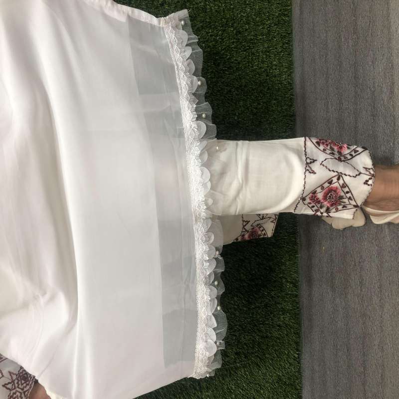 🔴 Details🔴 〰〰〰〰〰〰〰 ✨ Top:- Pure Georgette ✨ Inner :- Santoon ✨ Bottom :- pure jaam satin ✨ Colour :- White